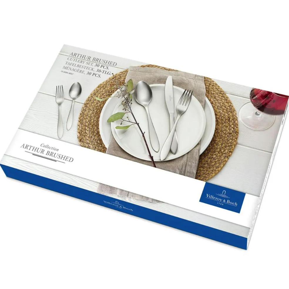 Arthur Cutlery Set from Villeroy & Boch. This is a cutlery set made of brushed stainless steel consisting of 30 pieces. The cutlery has a timeless design with flowing lines giving that gives an elegant touch on the table setting. Is dishwasher safe.