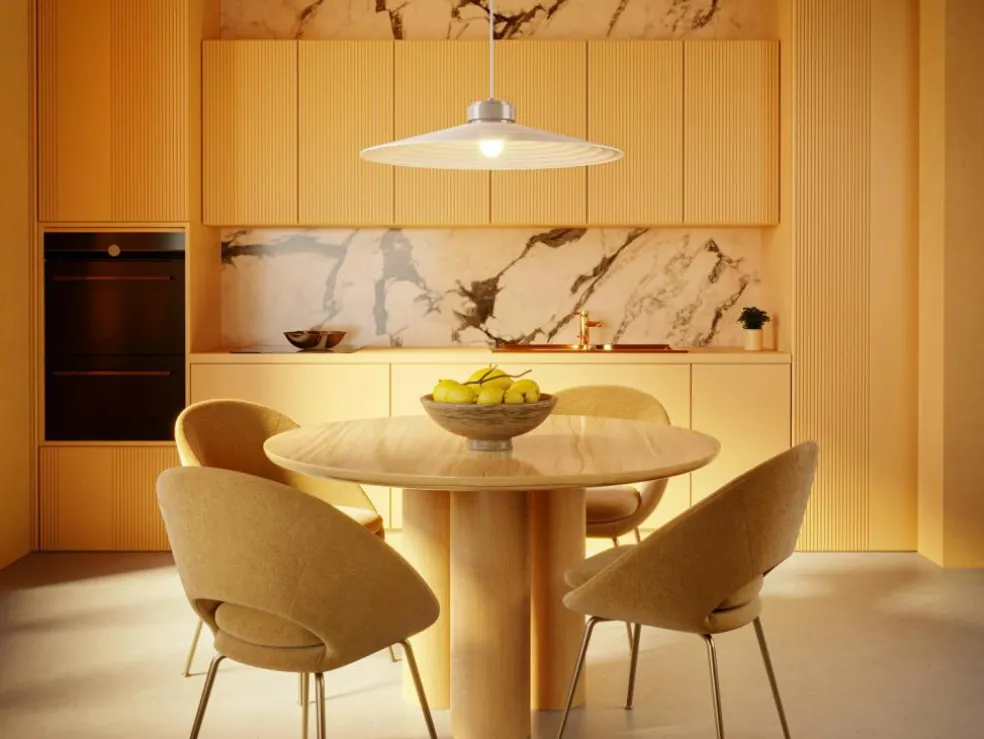 – Round, fluted lampshade.