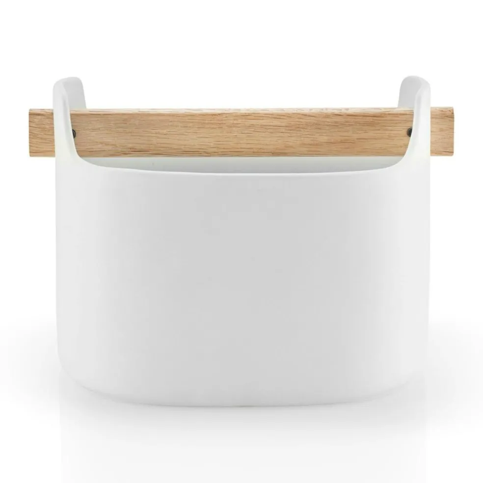 Toolbox from Eva Solo. This is a practical ceramic storage can with multiple applications. Use it to arrange for your kitchen utensils, cutlery or pens. The handle in oak wood is decorative and also helps you to organize.