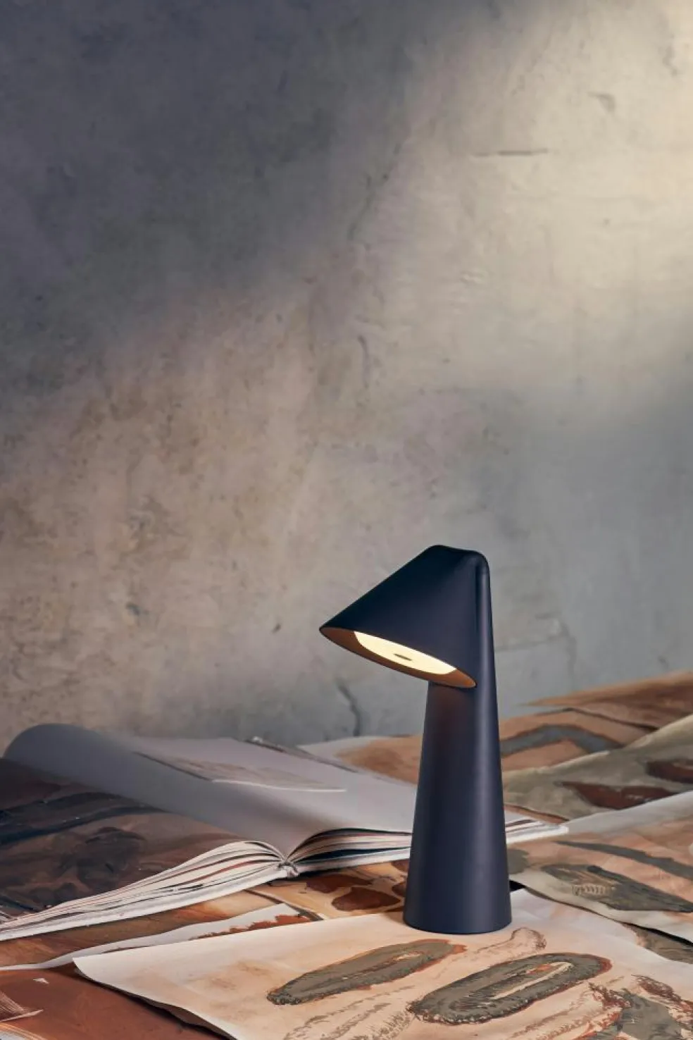 – Portable table lamp with a warm and inviting character.