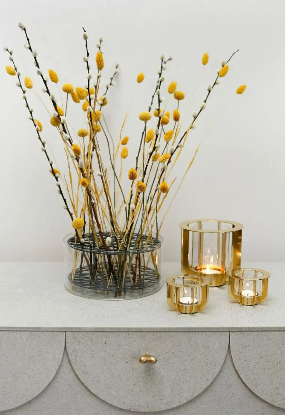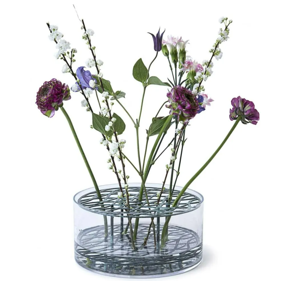 Äng, which means meadow in Swedish, from Swedish Klong quickly became a modern classic. The beautiful vases give the opportunity to arrange flowers in a new way thanks to the simple but smart design that allows spectacular flower arrangements. Even the simplest bouquets look elegant in an Äng vase. According to Eva Schildt, who designed Äng, each flower needs two support points to stand and she had that in mind when she designed the vase with the double brass mesh.