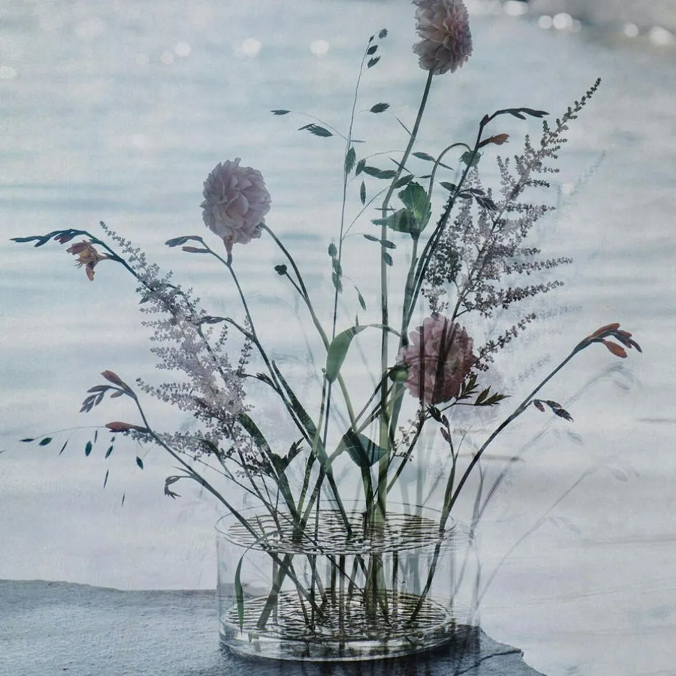 Äng Vase Large is the medium variant in the Äng family and just like the other models, this is a unique glass vase that has won the award for best interior accessories by Elle Decoration 2014 and has become a modern design classic. The holes of the insert vary in shape and size and, like on a meadow, the cut flowers fall naturally in place. The vase becomes as beautiful embellishment either filled with colourful flowers or single twigs.