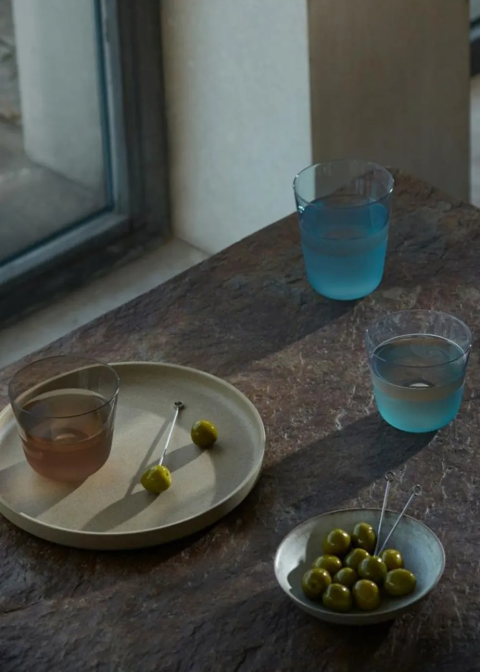 – Set of two tumbler glasses.