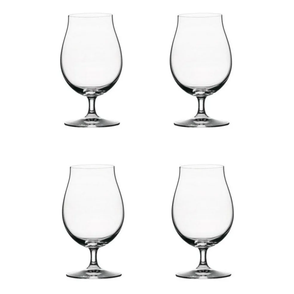 4-pack with Beer Glasses from Spiegelau. These beer glasses belongs to the Beer Classics series, which consists of glass developed for the specific character of different beers. They are made of thin-blown glass to provide an optimal taste and scent experience. This glass fits the majority of beers, as the wide opening of the glass brings out the full spectrum of the beers flavors.