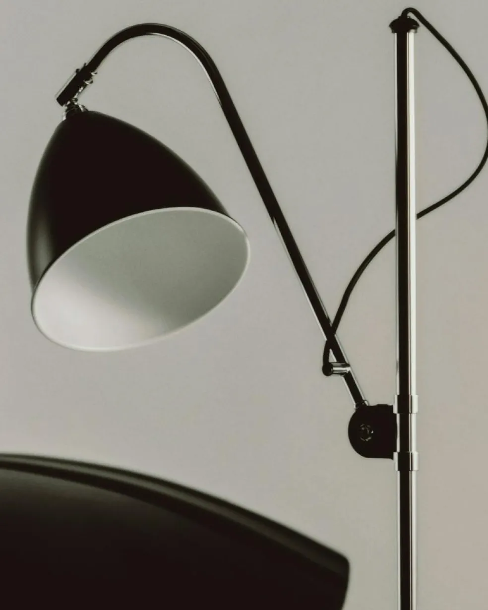 BL3M floor lamp from well-known Gubi. The Gubi lamp was designed in 1930 by the English designer Robert Dudley Best. During World War II, it became the status of a national icon when Winston Churchill had such a standing on his desk in the shelter under Whitehall. Today, more than 70 years after it was first manufactured, the Gubi lamp is a given design classic in Scandinavia, which with its elegant design fits into all types of interiors. The Bestlite Collection still uses its original design and stays close to the industrial feel. floor lamp has a height adjustable stand in chrome and adjustable screen. Adjustable between 113-152cm in height, arm 42 cm.