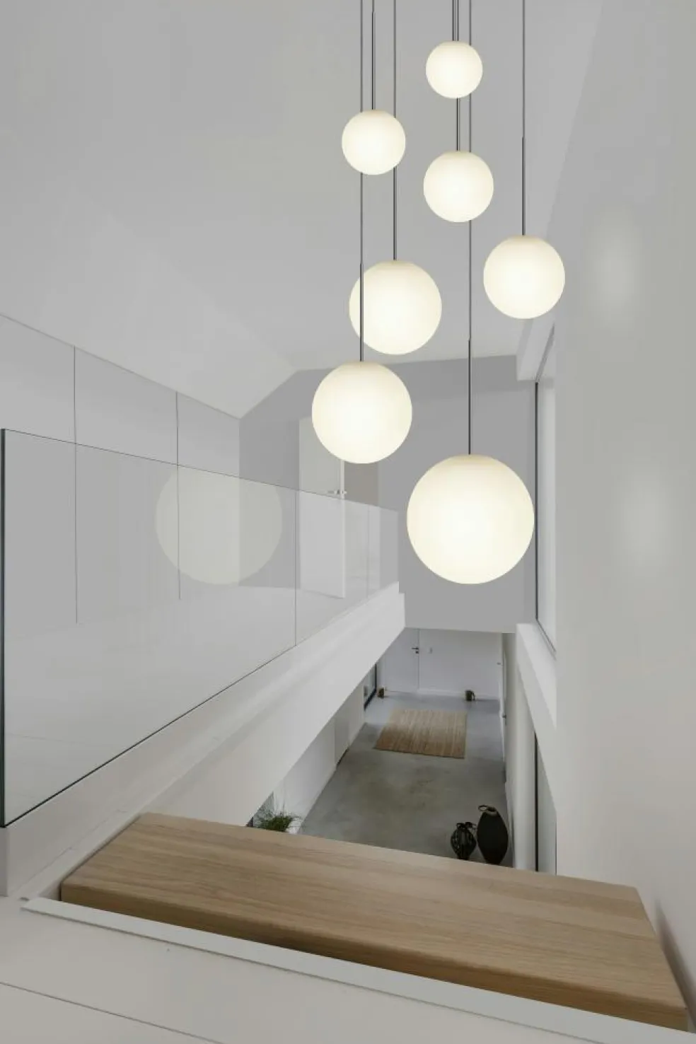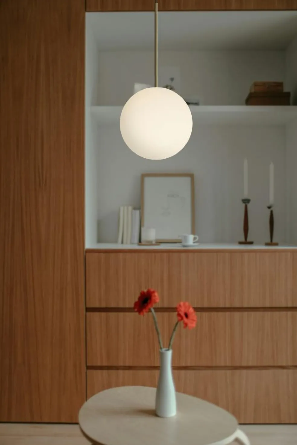 – A sophisticated spherical glass globe that provides a soft, diffused light.
