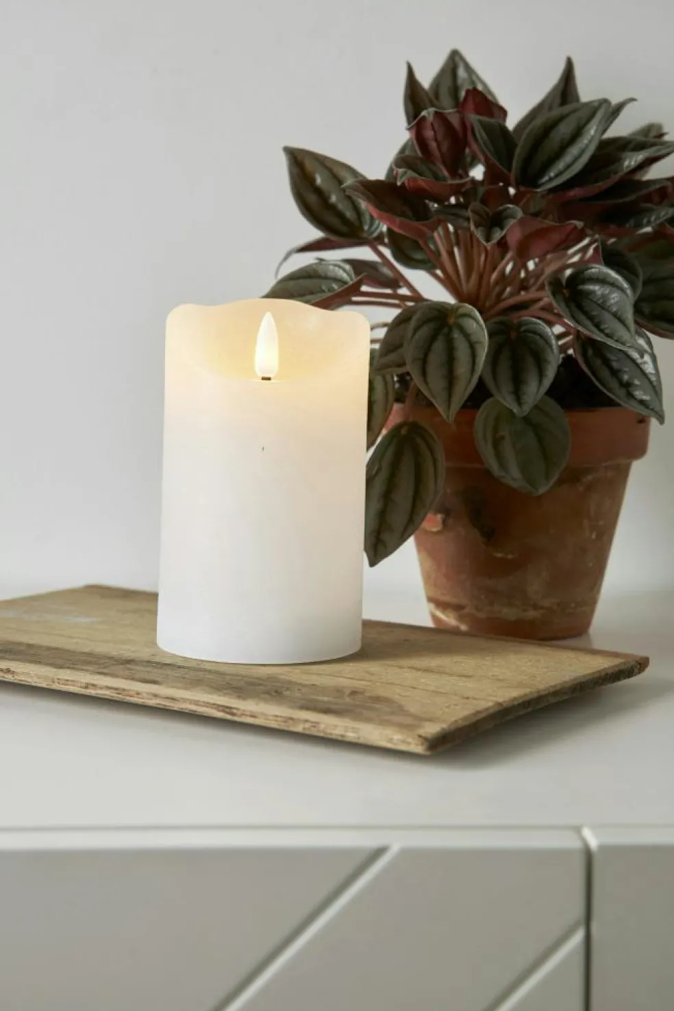 – The pillar candle fits well in the living room.
