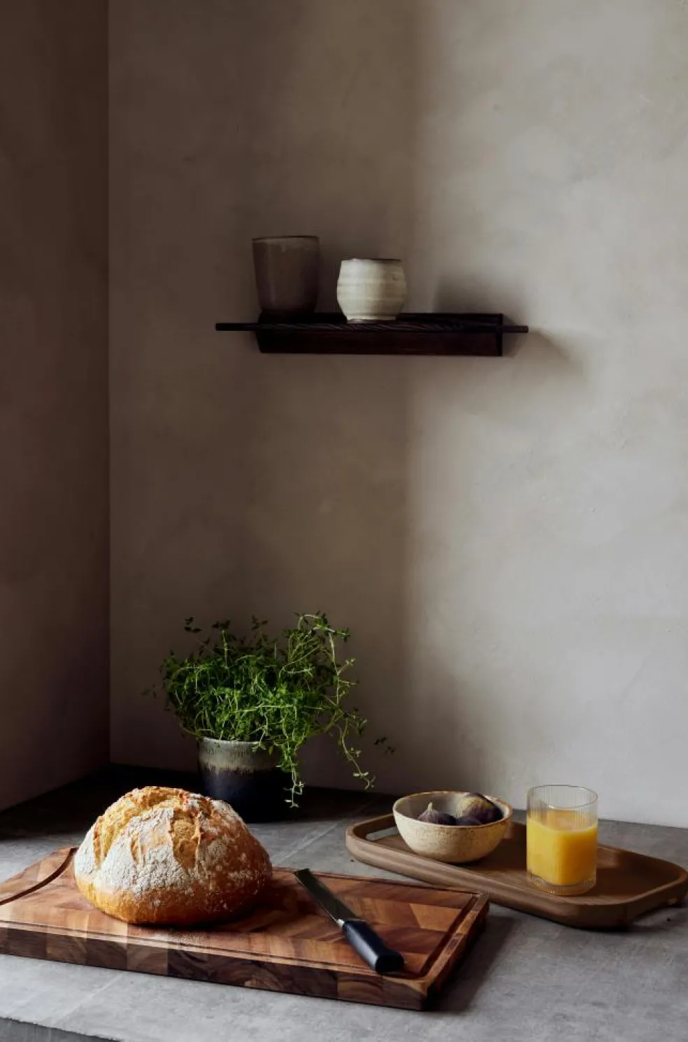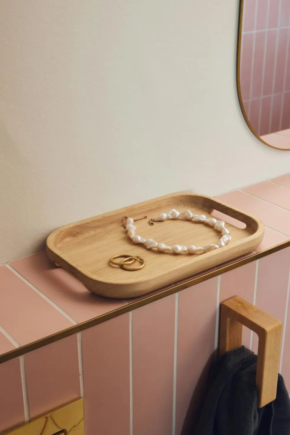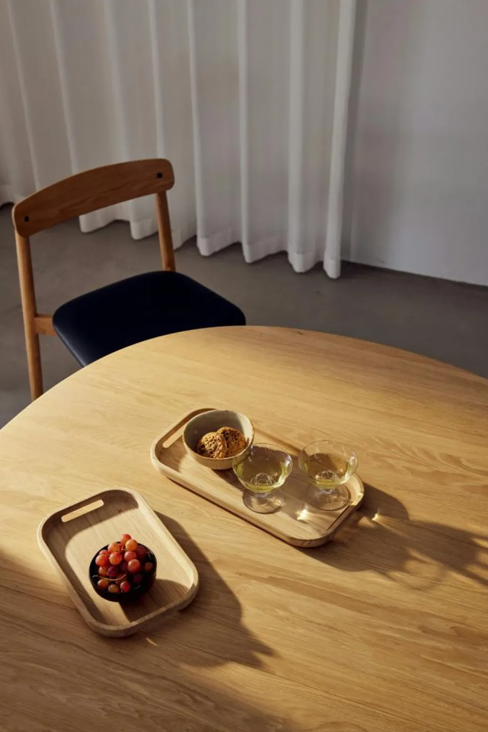 – Solid oak serving tray with soft, rounded shapes.