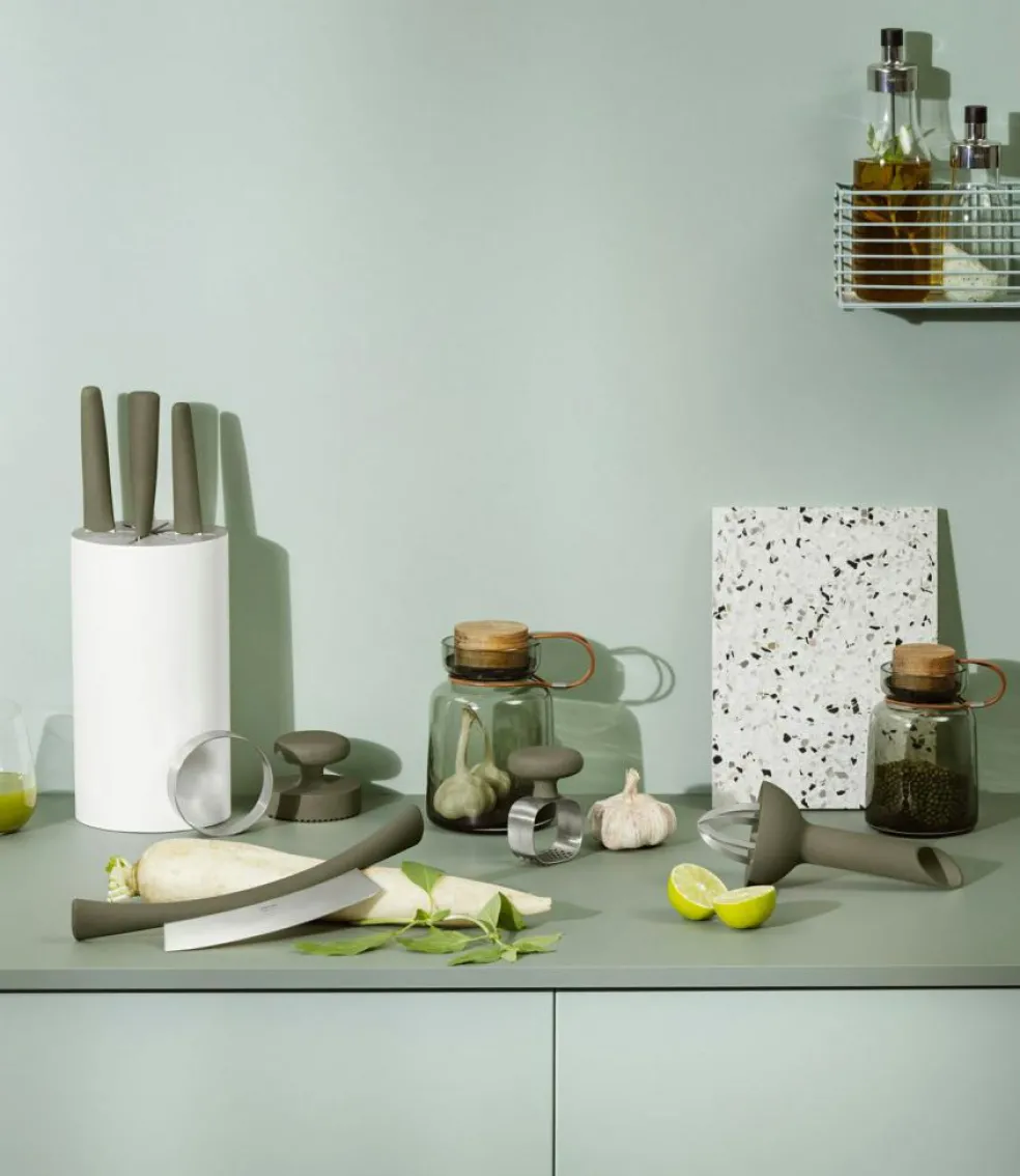 This garlic masher from Eva Solo belongs to the Green Tool series, that contains kitchen utensils that are designed with the environment in mind. The handles are made of sustainable composite material, which means that half of the plastic is replaced by wheat fibres.