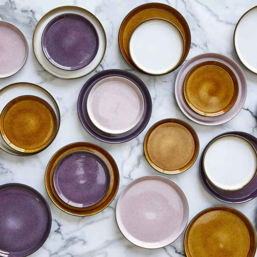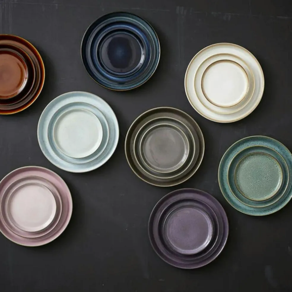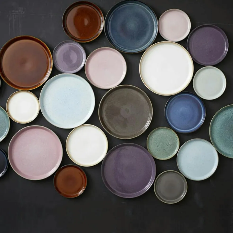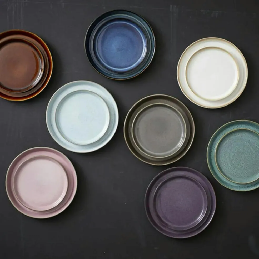 The plate is made of robust stoneware. The combination of the outer, matt glaze and the shiny glazes on the inside give an exciting expression. The plate withstands machine wash, microwave, and oven up to 250 degrees.