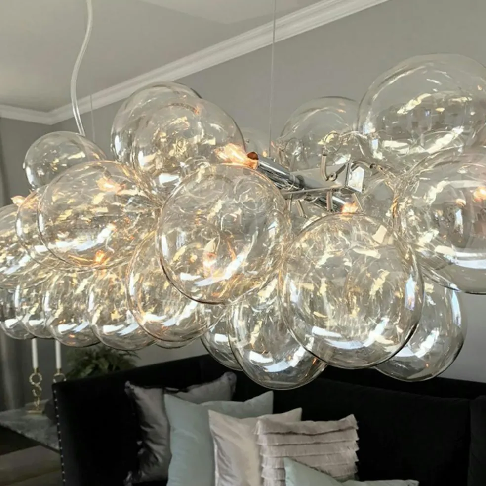 Gross Bar is a beautiful and exclusive pendant lamp from By Rydéns, consisting of 38 clear glass balls in an elegant cluster. This impressive lamp fits perfectly in many places, whether it is over the dining table, in the living room or over the conference table.
