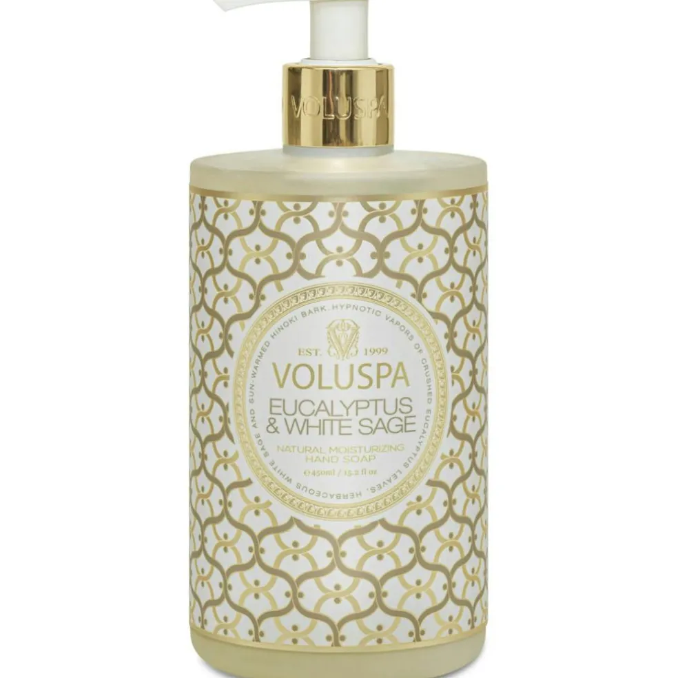 – Hand soap scented with herbal sage, eucalyptus, cardamom and sun-warmed hinoki bark.