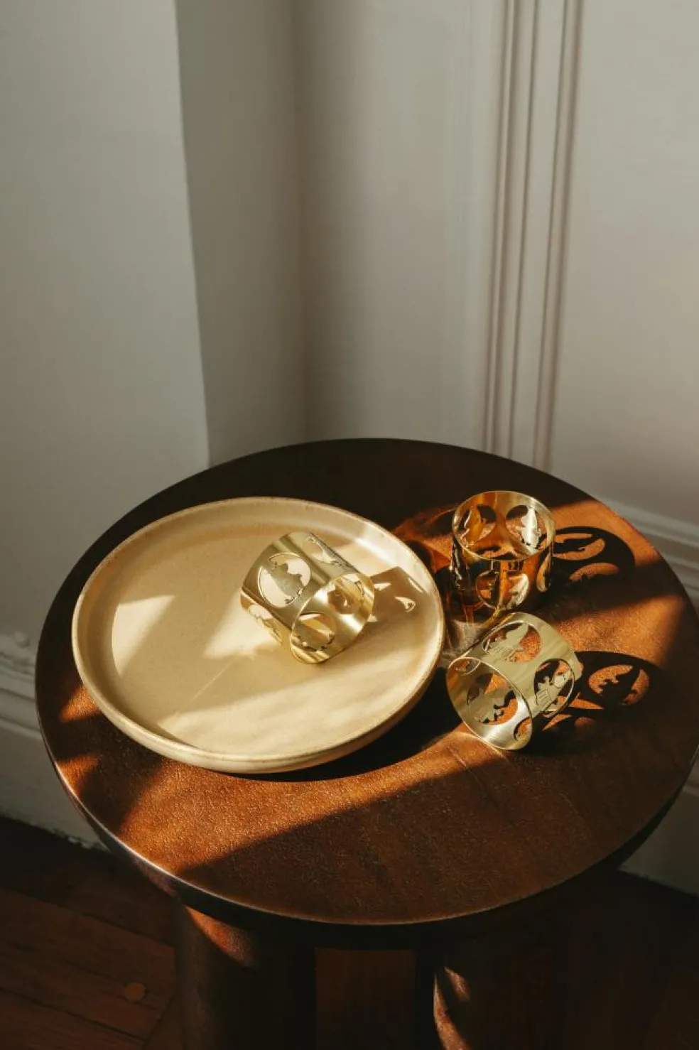– Handmade brass napkin rings.
