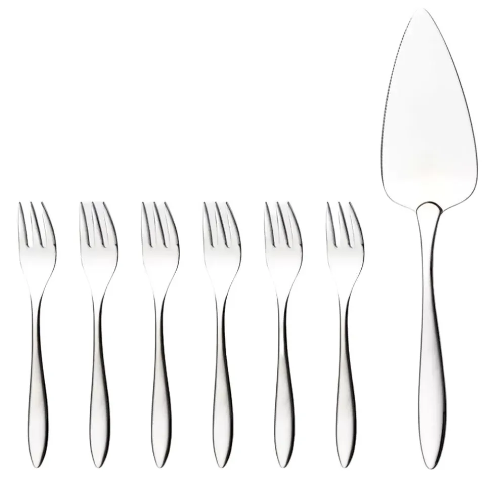 – It comes with 6 cakeforks and 1 cake server.