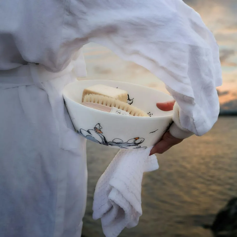 Serving bowl from Arabia. This is a playful serving bowl with motifs from Tove Jansson’s story about the Moomintrollet and his friends. It makes serving the salad or fruit more fun for both adults and children. Is nice to combine with other products from the same series.