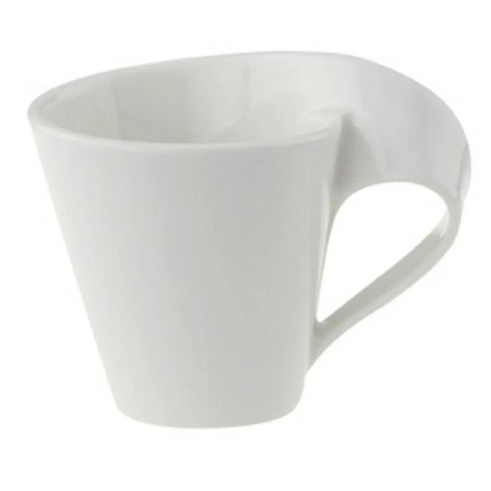 This espresso cup forms part of Villeroy & Boch’s award winning New Wave collection. New Wave with its characteristic wave shapes and curved accents is modern design at its finest. In 2004 Villeroy and Boch was granted the very first German National Industry ‘Award for Innovation’ for the design and the production engineering of New Wave. The highly innovative nature of the product was pivotal for achieving this award, which is demonstrated in the unconventional design as well as the specially developed technology. The wavy design is created by an innovative manufacturing process, with the handles drawn out of the same piece of clay as the body. Modern, functional and durable for everyday use, New Wave is easy to fall in love with. Create a unique place setting with a range of premium porcelain and complete the look with complementing glassware and cutlery for maximum effect. Dishwasher & microwave safe.