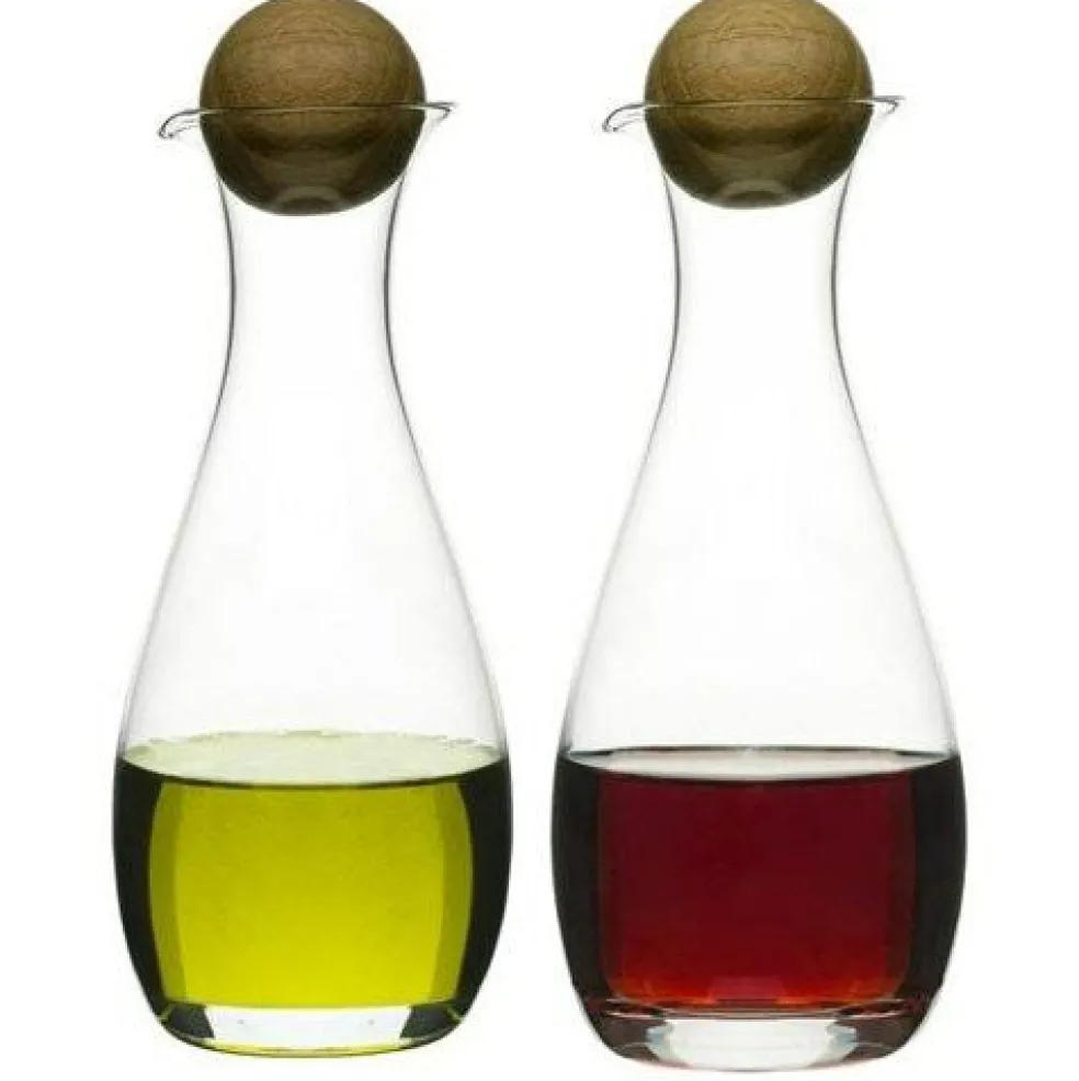 Oil/vinegar bottles in a mouth-blown glass with oak cork from Sagaform’s popular series Oval Oak.