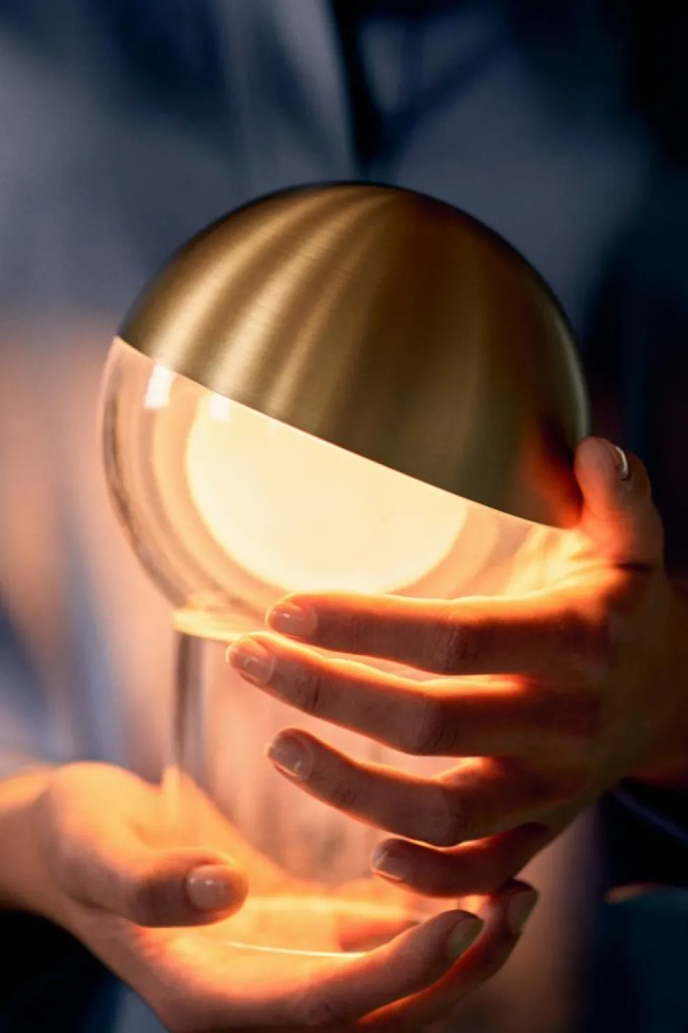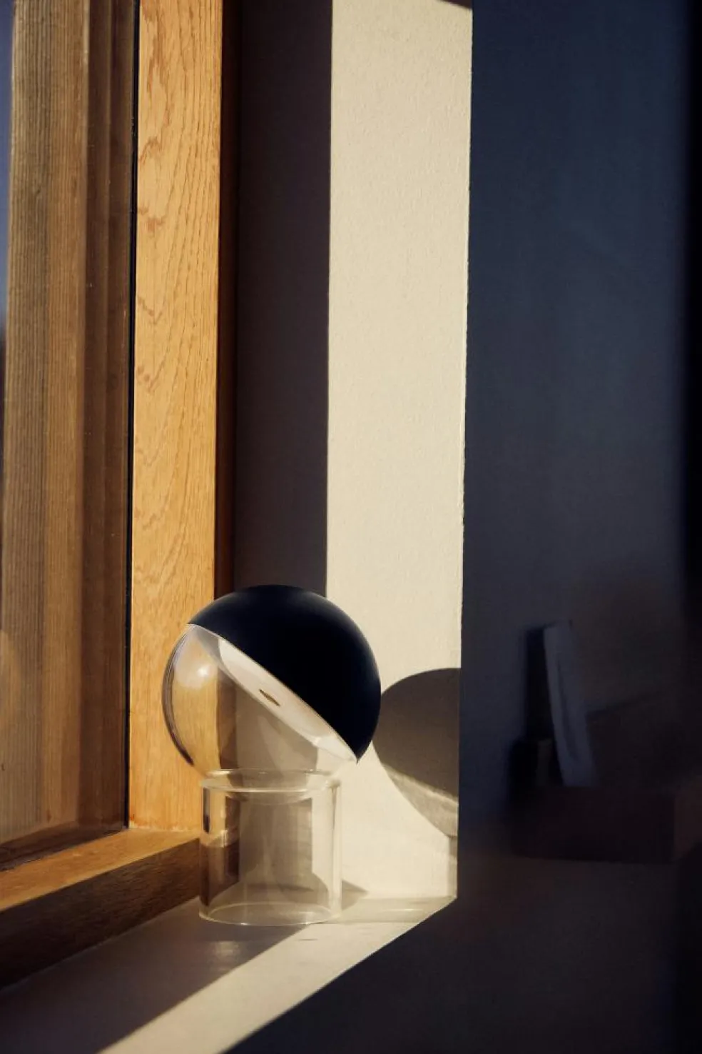 – Sculptural and portable table lamp with a floating design.