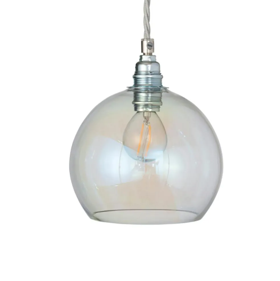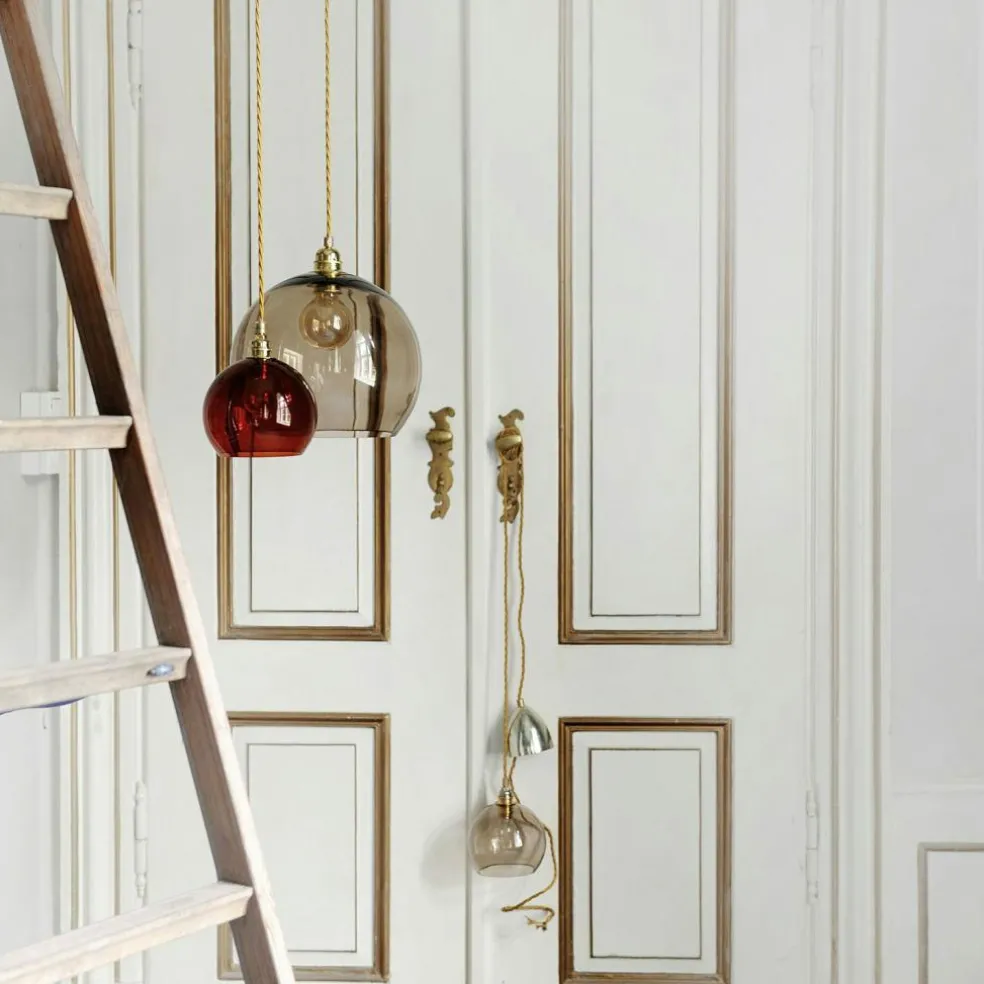 Rowan pendant from EBB & FLOW. The pendant is made of mouthblown glass and the combination of metal fittings and twisted wire makes Rowan become an unbeatable detail in your home. Rowan is wonderful in its simplicity but gets an extra lift if you hang several together.This lamp must be fitted by a qualified electrician (contains earth wiring.