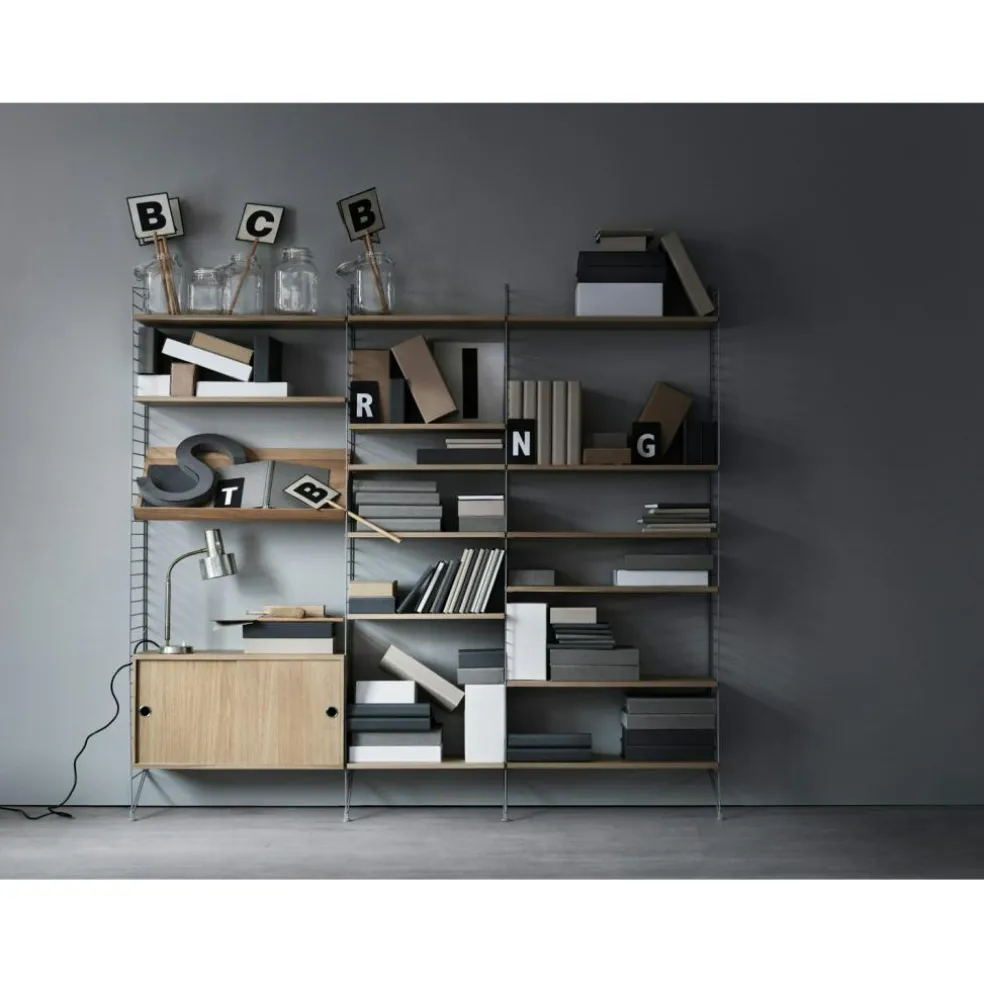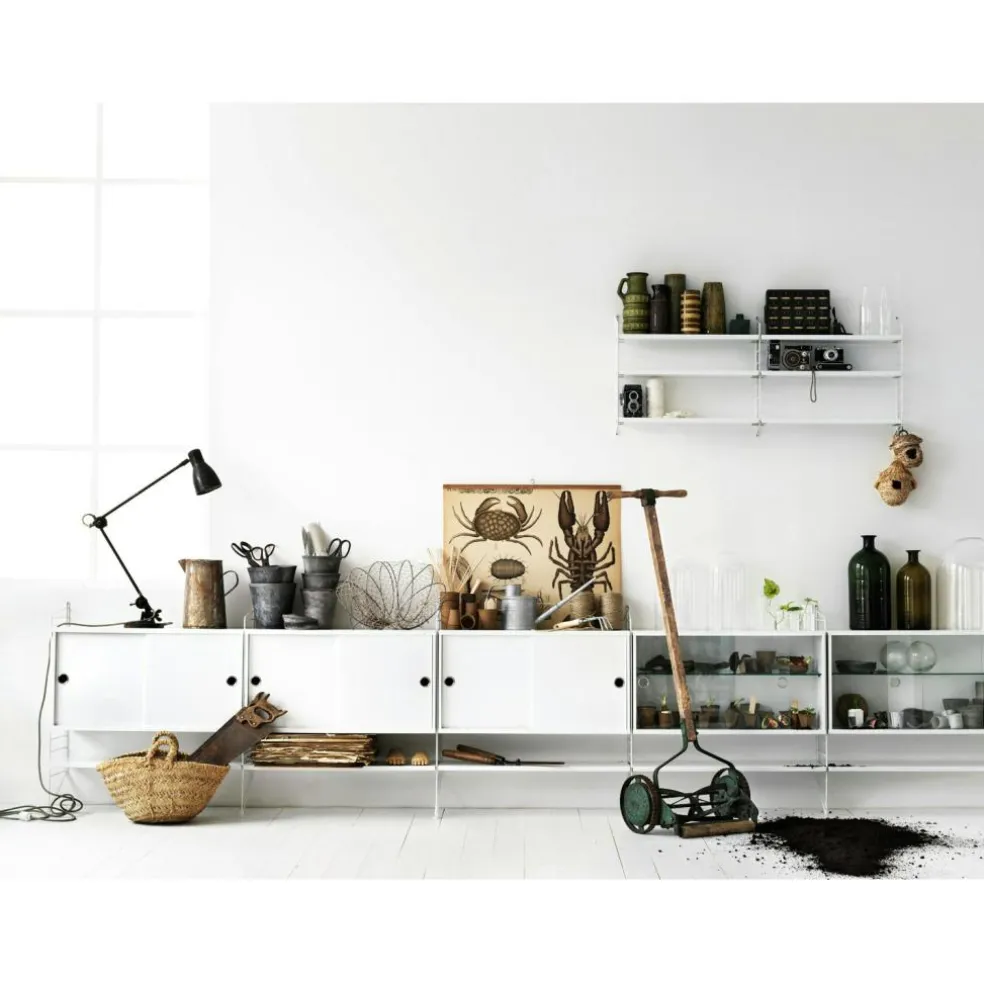 Combine the cabinet with panels from String. The designer is Nisse Strinning.