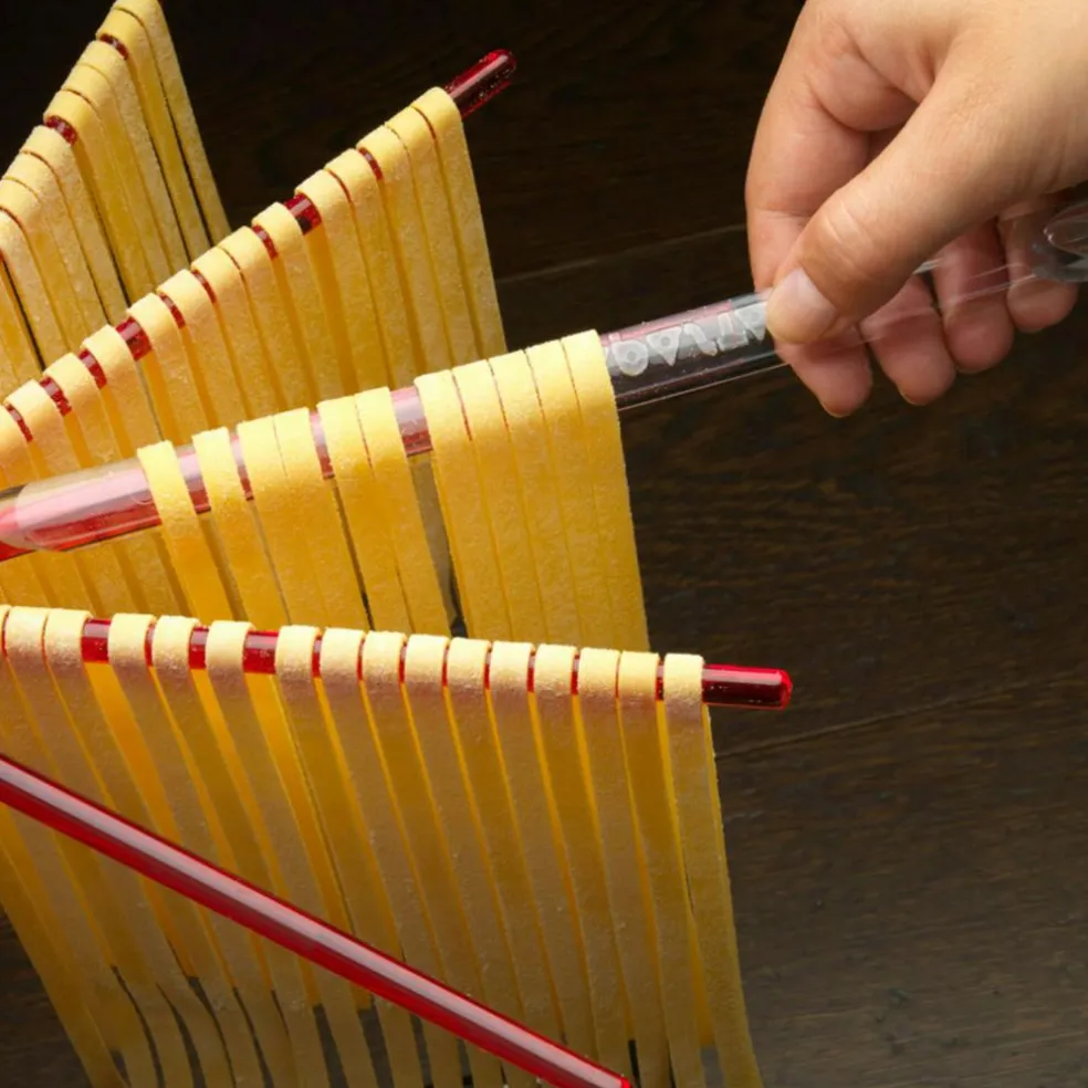 When you have prepared the pasta dough and cut it into desired shape, the Tacapasta pasta drying rack from Marcato is the optimal accessory to store the freshly cut pasta and allow it to dry before cooking. 16 arms in a the shape of a fan have the capacity to carry up to 2 kg of pasta while taking up very limited space. With a multifunctional rod stored in the middle of the drying rack, make it easy to catch the freshly cut pasta from the machine and simply put it on one of Tacapasta’s arms to rest.