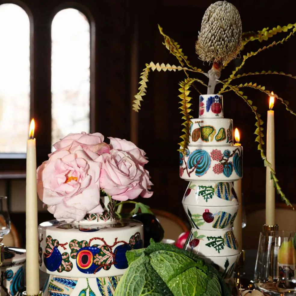 – Colourful, detailed vegetables and fruit motif.